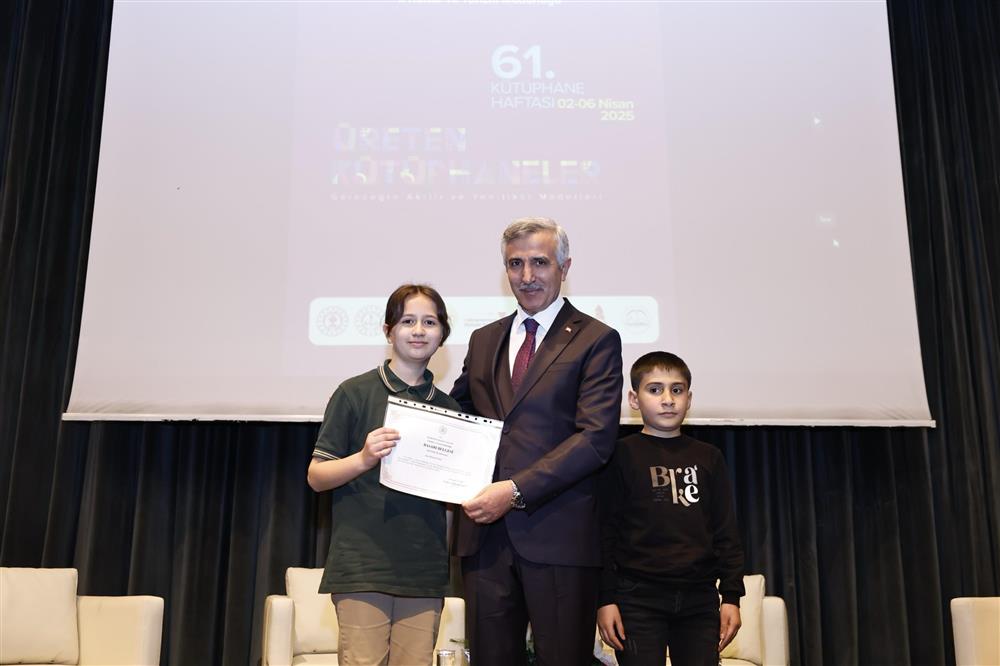 İlimizde bulunan kütüphanelerden kitap alarak en çok kitap okuyanlara çocuk, genç ve yetişkin kategorilerinde belge ve hediye takdimleri yapıldı.