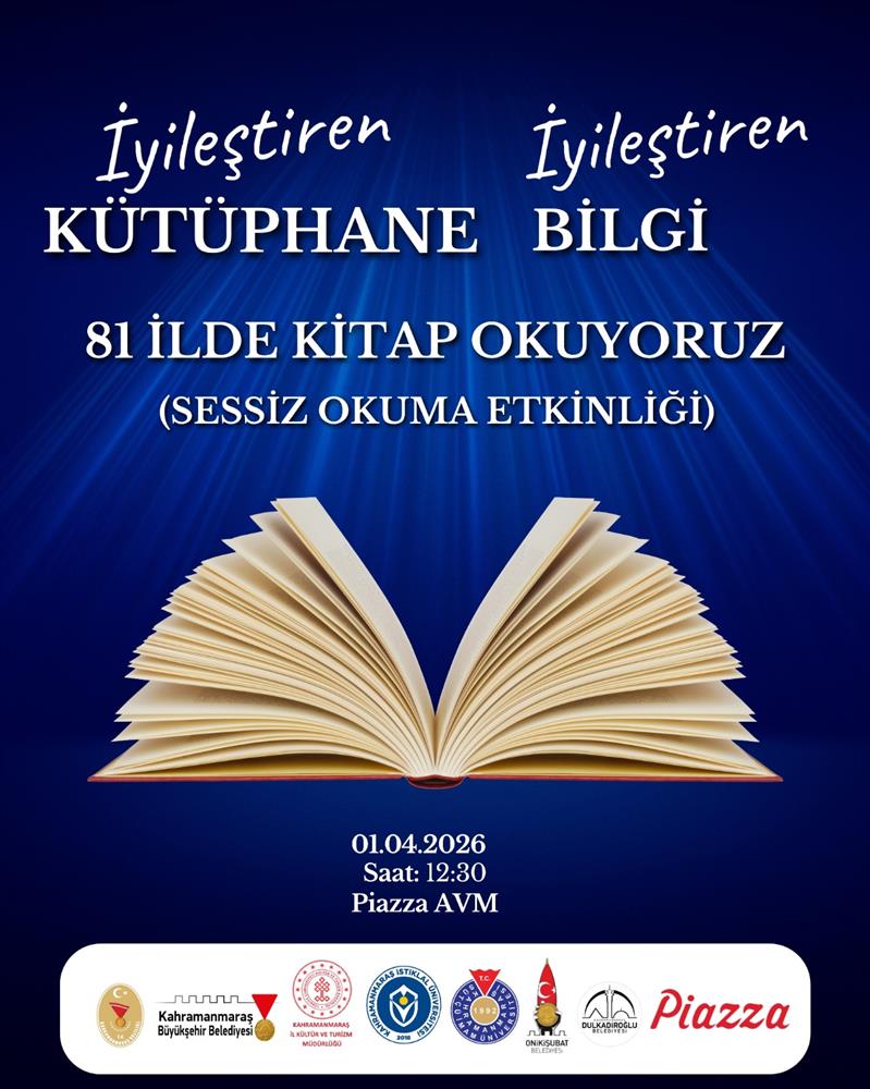 13 | 01.04.2026 | 12:30 | Kahramanmaraş İl Kültür ve Turizm Müdürlüğü | 81 İlde Kitap Okuyoruz ( Sessiz Okuma Etkinliği) | Piazza AVM |