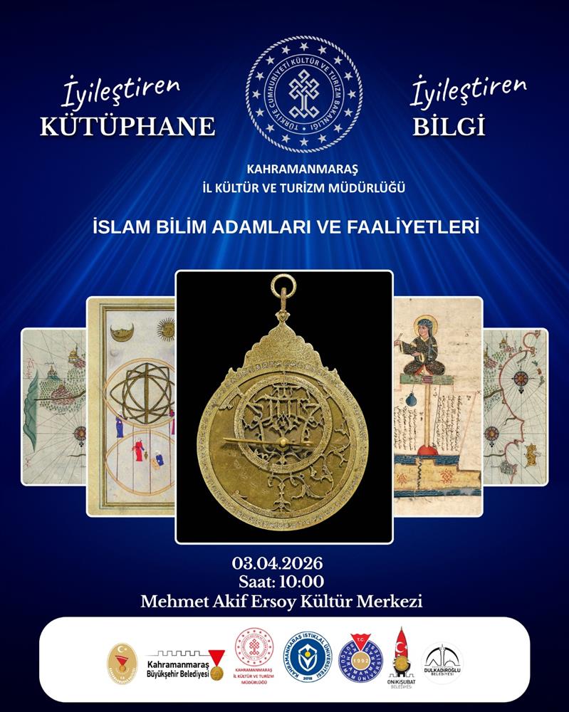 27 | 03.04.2026 | 10:00 | Kahramanmaraş İl Kültür ve Turizm Müdürlüğü | Sergi (İslam Bilim Adamları ve Faaliyetleri) | Mehmet Akif Ersoy Kültür Merkezi |